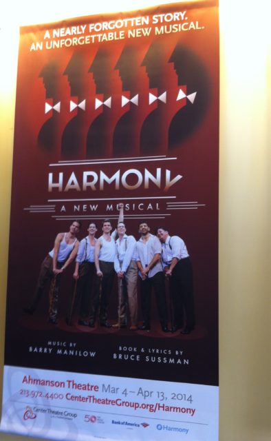 I was lucky enough to attend a performance of Manilow (yes, as in Barry) and Sussman’s new musical Harmony, running through April 13th at The Ahmanson Theatre in downtown Los Angeles. Why should you see it? It’s sad. It’s funny. It’s emotionally charged. And the music stays with you long after you leave the theater.